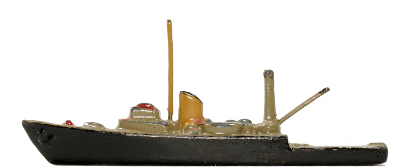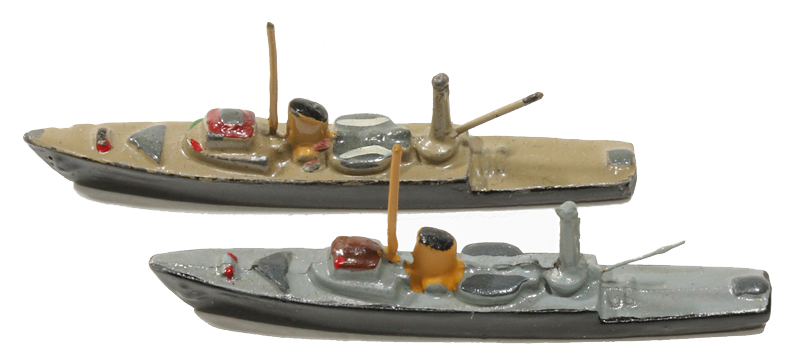 VG, Metall, 1 Drahtmast, achtern Kran mit Ausleger. Rumpf schwarz, Deck sandfarbig. Anfangs mit dem Seeflugzeug HE 114, H. 556, angeboten.