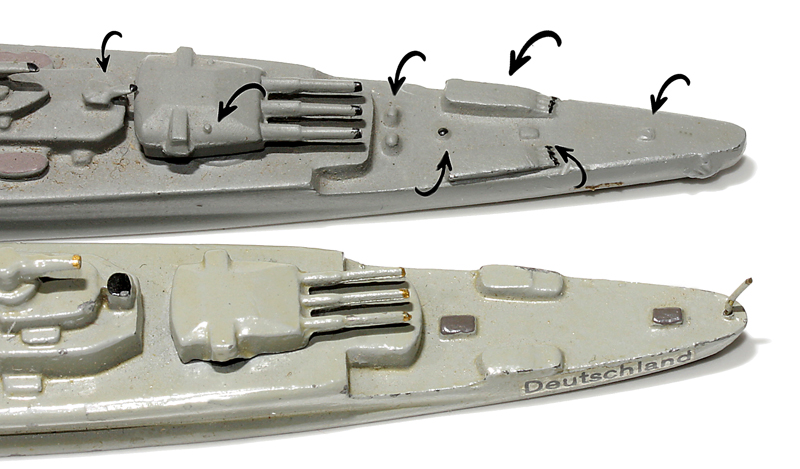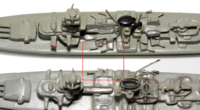 2 Drahtkräne. Flakrohr gegossen.Torpedorohre