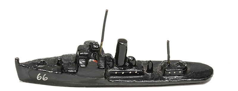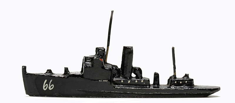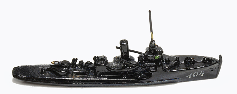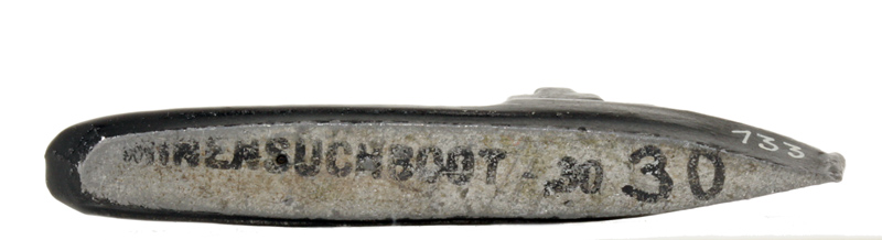 VG, Boden ausgegossen. Metall. Bodenstempel wie oben. Schwarz. Das Heck