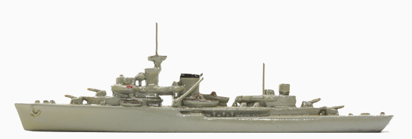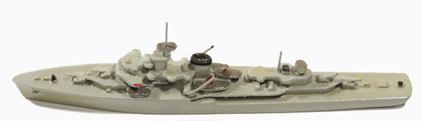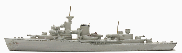 2 Drahtmasten. Schornstein vertieft, Geschütze mit Draht- oder Gussrohren.