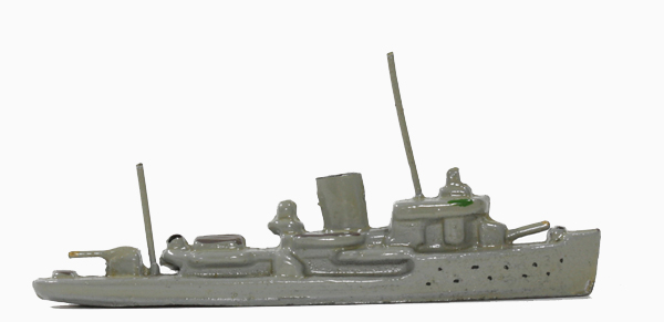VG, blaugrau, 1 Schornstein, 1 Drahtmast, gegossene Geschützrohre
