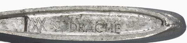 VG, grau - sandgrau, glänzend. Bodenstempel "DRACHE -,40", auch "TENDER