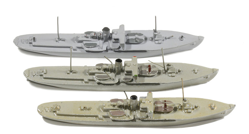 bis sandgrau. 2 Drahtmasten, vorn mit Ladebaum. 2 Drahtkräne.