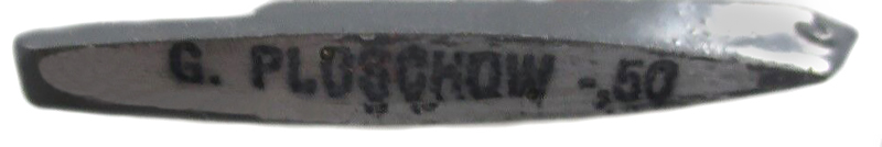 VG, Metall, auch mit Bodenstempel "G.Plochow -,50" 1 Drahtmast, achtern Kran mit Ausleger. Rumpf schwarz, Deck sandfarbig. Anfangs mit dem Seeflugzeug HE 114, H. 556, angeboten.