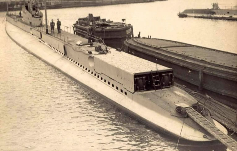 Die "Ajax" mit beiden ausgefahrenen Periskopen,