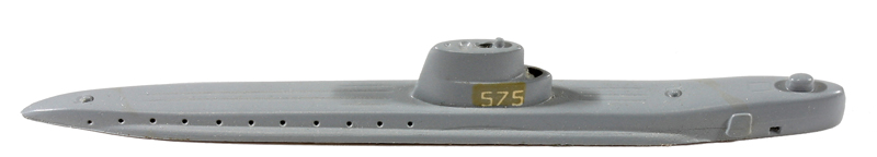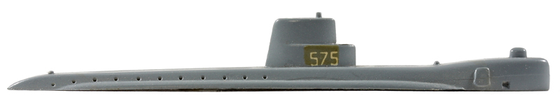 | 1962 - 1968 | VG, blaugrau , BP "WM SEA WOLF -US". 2 erhabene Flutschlitzlinien, auch 3-4-2, von vorn nach hinten gesehen, auch 3 vorn, 4 hinten, wobei die äusseren kurz, die mittleren lang sind (siehe Foto). An beiden Rumpfseiten hinter dem Turm je 11 Fluschlitzöffnungen. Auch mit Kennung AZB "575" | ||||